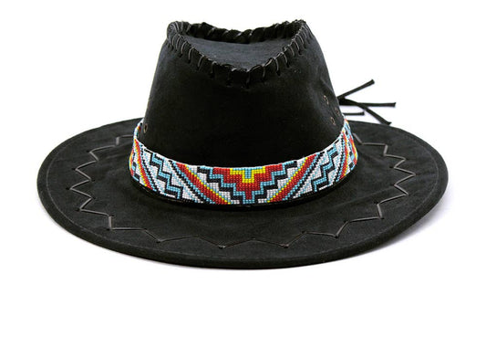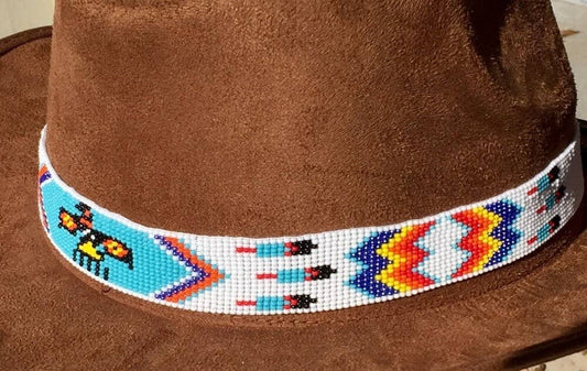 Handmade beaded Geometric White Multi-Colored loom Cowboy style Hatband