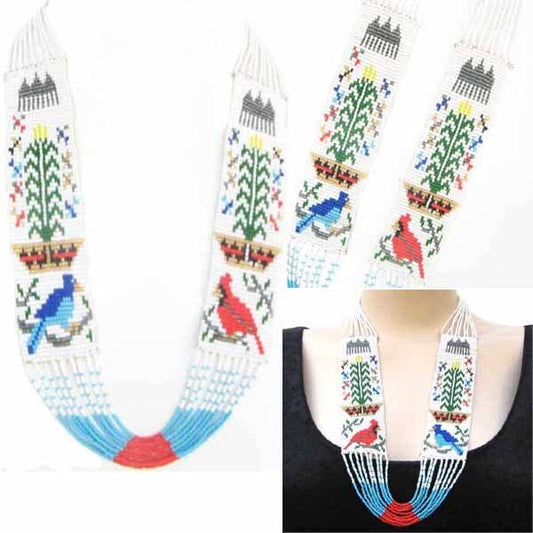 Handmade Beaded Multicolored Seed Bead Birds Layered Necklace
