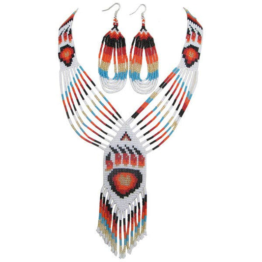 Handmade beaded Red Bear Paw necklace earrings bracelet set