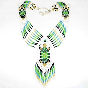 Green Gold Seed Beaded Turtle Beadwork Necklace Earrings