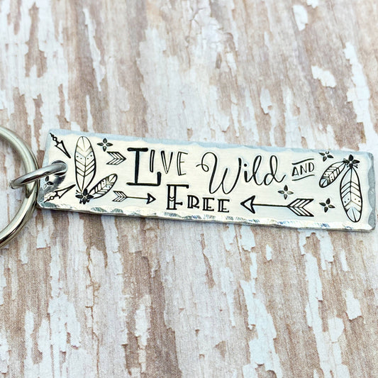 Live Wild & Free Hand-Stamped Simple Tag Keychain
