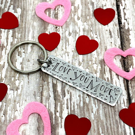 Love You More Hand-stamped Simple Tag Keychain