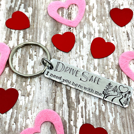 Drive Safely Hand-stamped Simple Tag Keychain