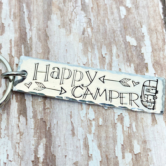 Happy Camper Hand-Stamped Simple Tag Keychain