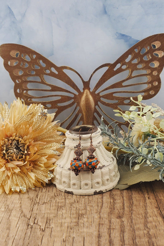 Magic Carpet stunning Artisan Glass Earrings, Lampwork Glass Bead by Grace Lampwork Beads, Copper Earring Wire