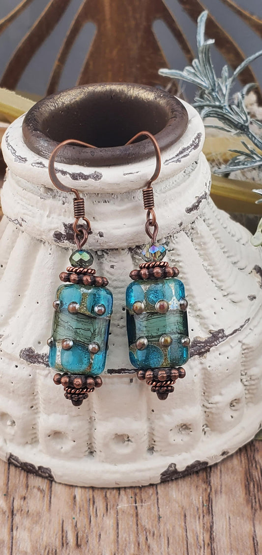 Mystical Bayou stunning Artisan Glass Earrings, Lampwork Glass Bead by Grace Lampwork Beads, Copper Earring Wire