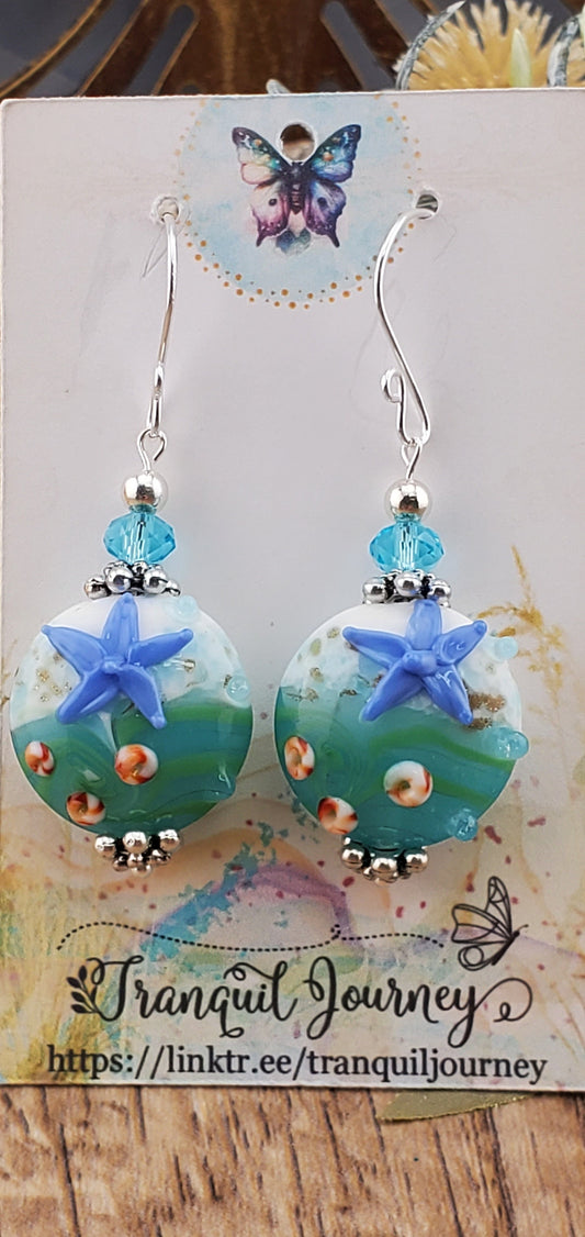 Sea you soon Artisan Glass Earrings, Lampwork Glass Bead handcrafted by a talented artisan, Silver Filled Earring Wire