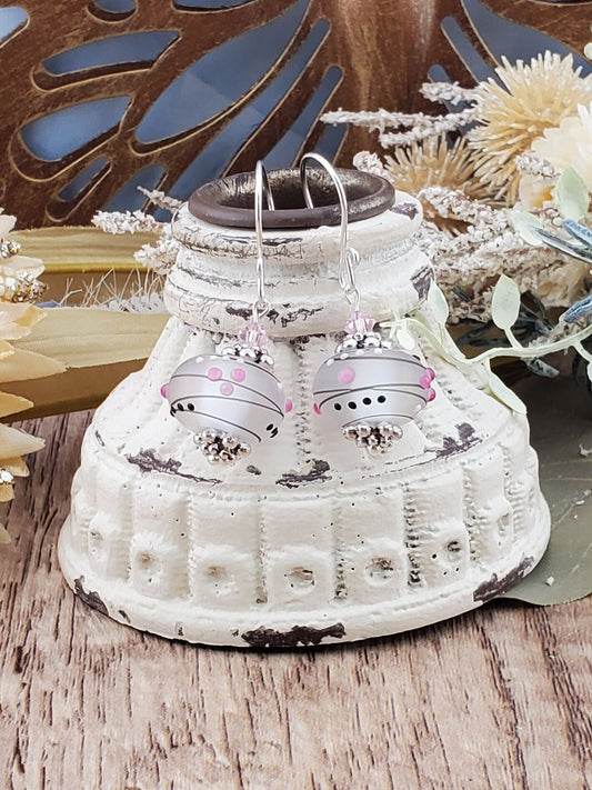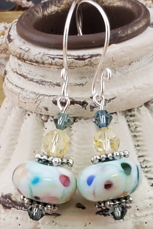 Cue the Confetti Artisan Glass Earrings, Lampwork Glass Bead handcrafted by a talented artisan, Silver Filled Earring Wire
