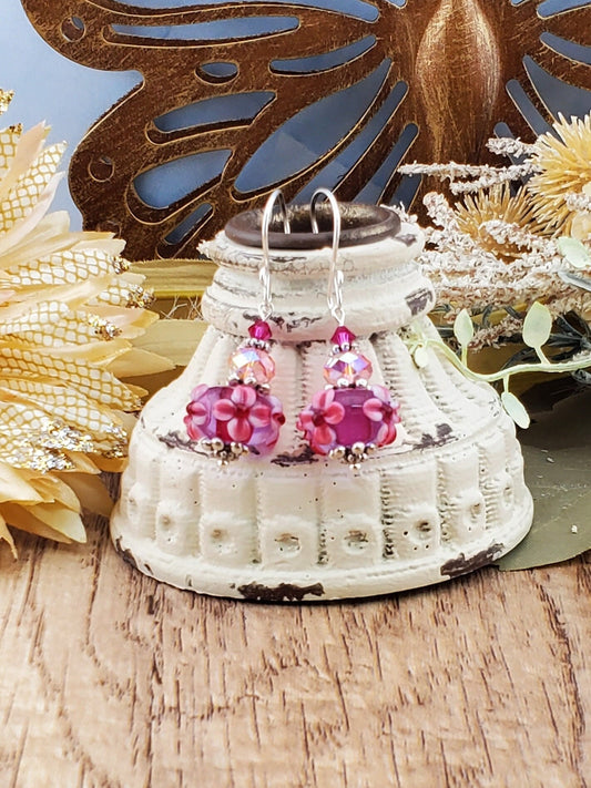 Pink Power Artisan Glass Earrings, Lampwork Glass Bead handcrafted by a talented artisan, Silver Filled Earring Wire