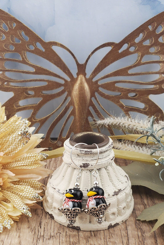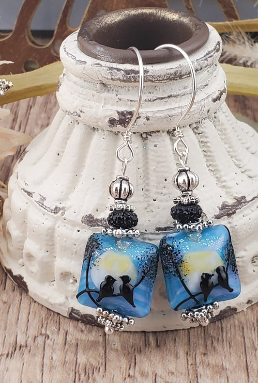 I just Cawed to say I love you Artisan Glass Earrings, Lampwork Glass Bead by Grace Lampwork Beads, Sterling Silver Earring Wire