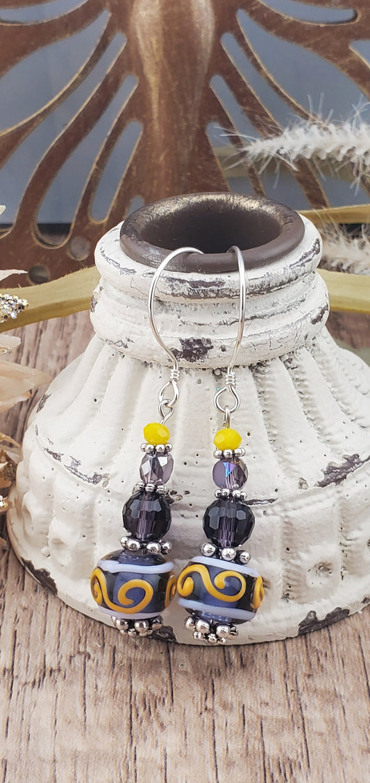 Stormy Skies Artisan Glass Earrings, Lampwork Glass Bead by Grace Lampwork Beads, Sterling Silver Earring Wire