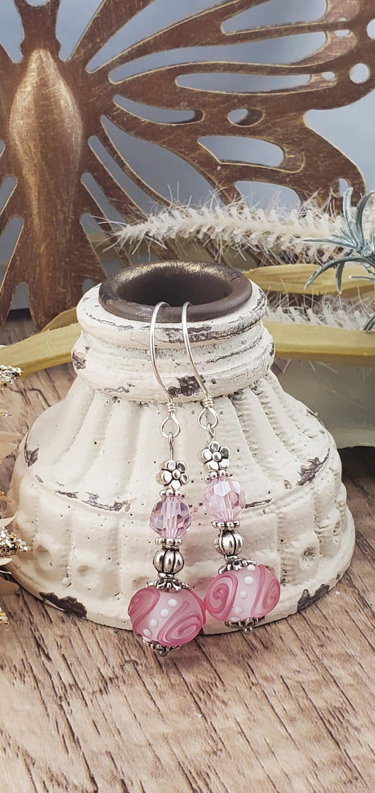 Happiness Blooms from Within Artisan Glass Earrings, Lampwork Glass Bead by Grace Lampwork Beads, Sterling Silver Earring Wire