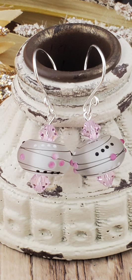 Splendid Sophistication Artisan Glass Earrings, Lampwork Glass Bead handcrafted by a talented artisan, Silver Filled Earring Wire