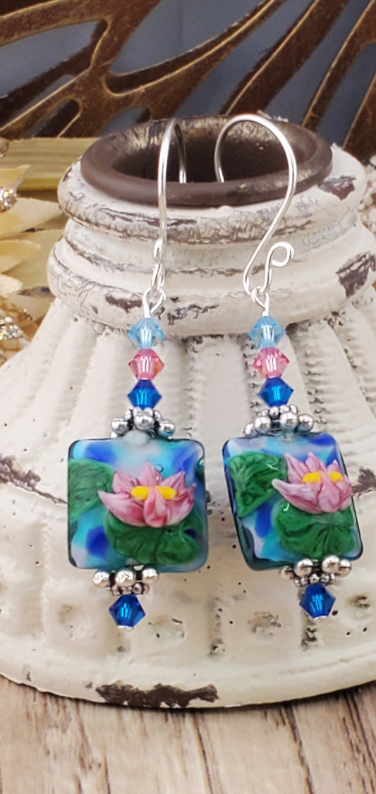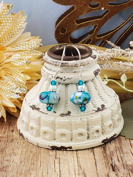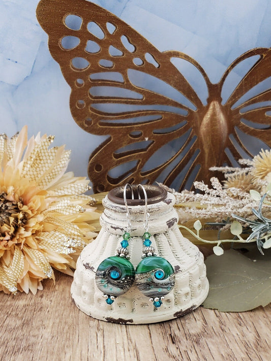 Tranquil Oasis Artisan Glass Earrings, Lampwork Glass Bead handcrafted by a talented artisan, Silver Filled Earring Wire