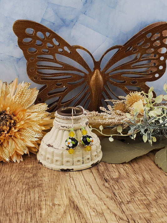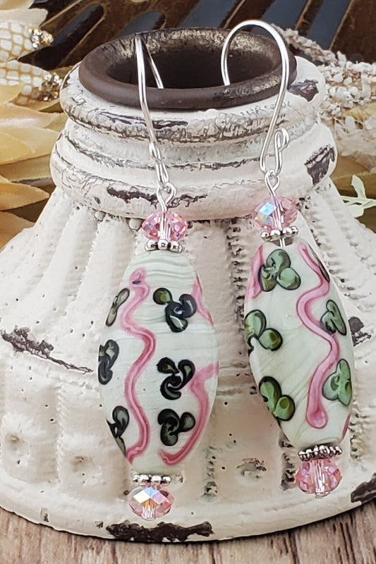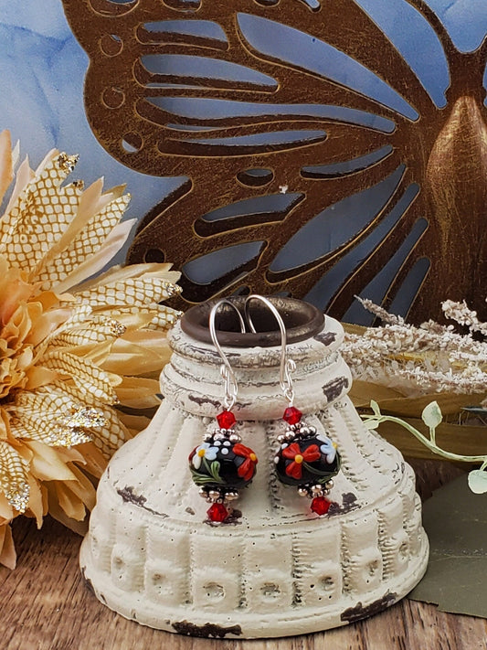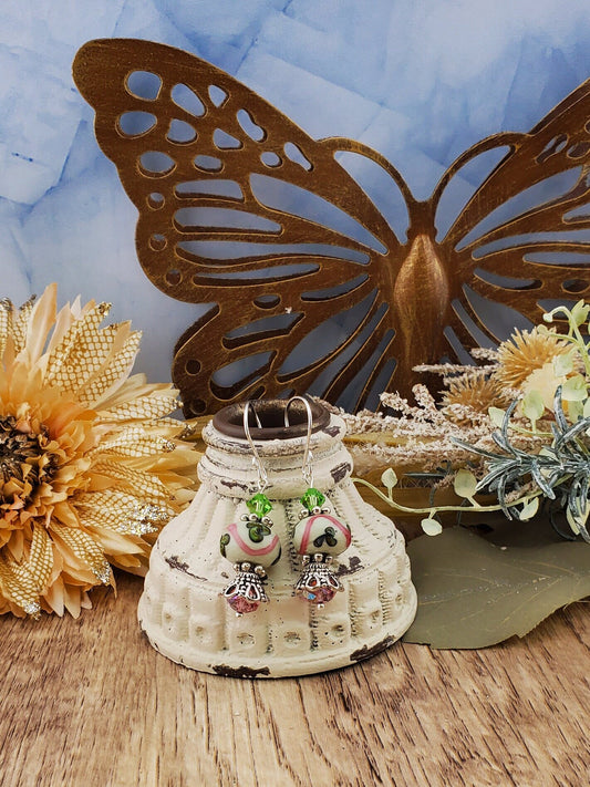 Garden Delight Artisan Glass Earrings, Lampwork Glass Bead handcrafted by a talented artisan, Silver Filled Earring Wire