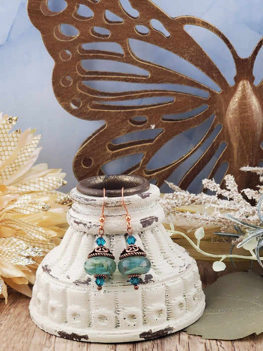 Seaside Treasure Artisan Glass Earrings, Lampwork Glass Bead handcrafted by a talented artisan, Copper Earring Wire