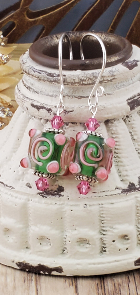 Joyful Blooms Artisan Glass Earrings, Lampwork Glass Bead handcrafted by a talented artisan, Silver Filled Earring Wire