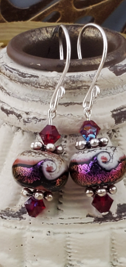 Color me Purple Artisan Glass Earrings, Lampwork Glass Bead handcrafted by a talented artisan, Silver Filled Earring Wire
