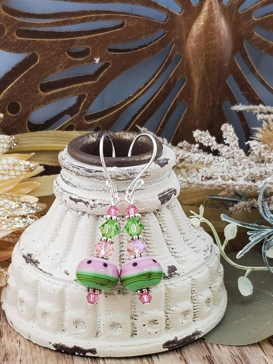 One in a Melon Artisan Glass Earrings, Lampwork Glass Bead handcrafted by a talented artisan, Silver Filled Earring Wire