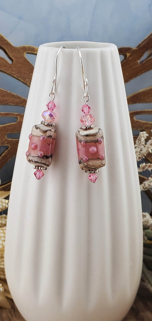 SS Blushing Snow Buddy Artisan Glass Earrings, Sterling Silver Earring Wire