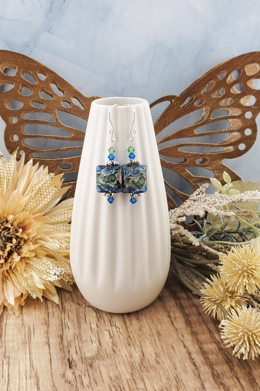 Ocean Tides Earrings, Lamp work Glass Bead handcrafted by a talented artisan, Silver Filled Earring Wire