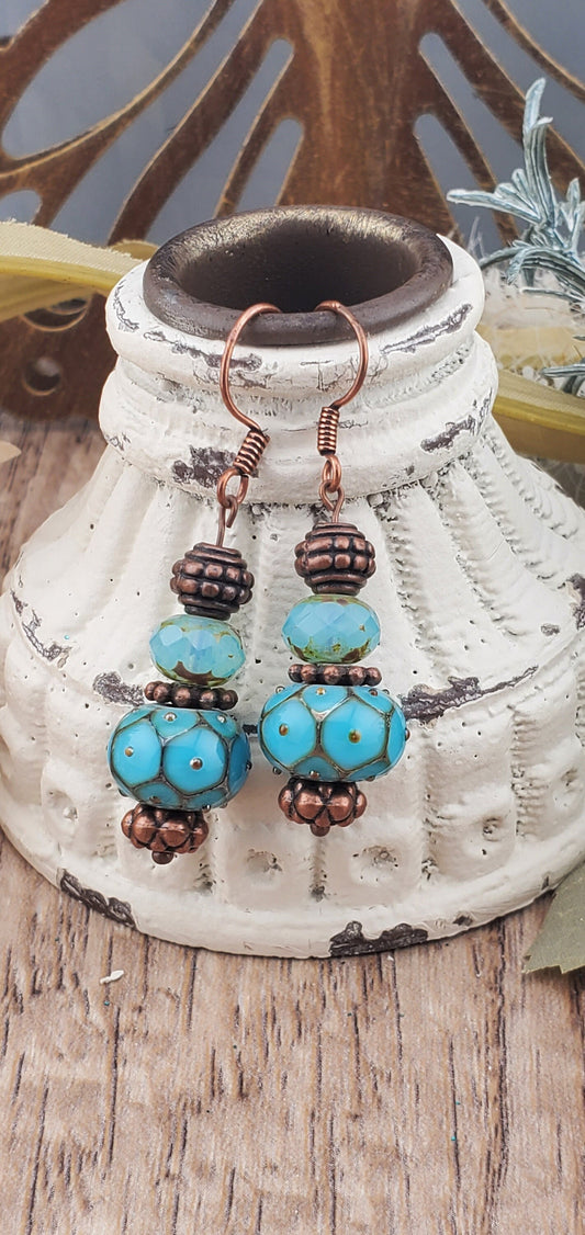 Arabian Nights stunning Artisan Glass Earrings, Lampwork Glass Bead by Grace Lampwork Beads, Copper Earring Wire