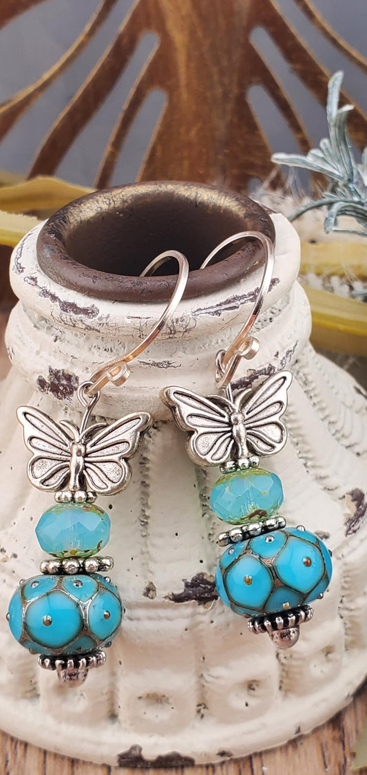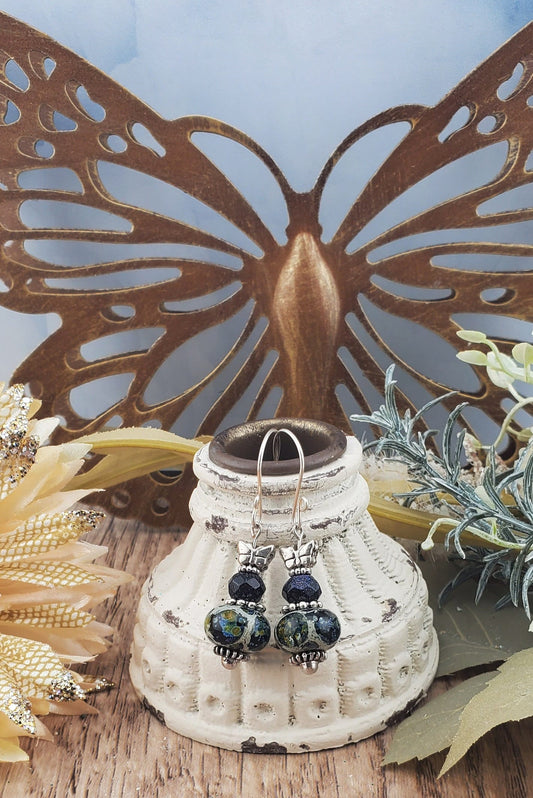 Butterfly Blues Artisan Glass Earrings, Lampwork Glass Bead by Grace Lampwork Beads, Silver Filled Earring Wire