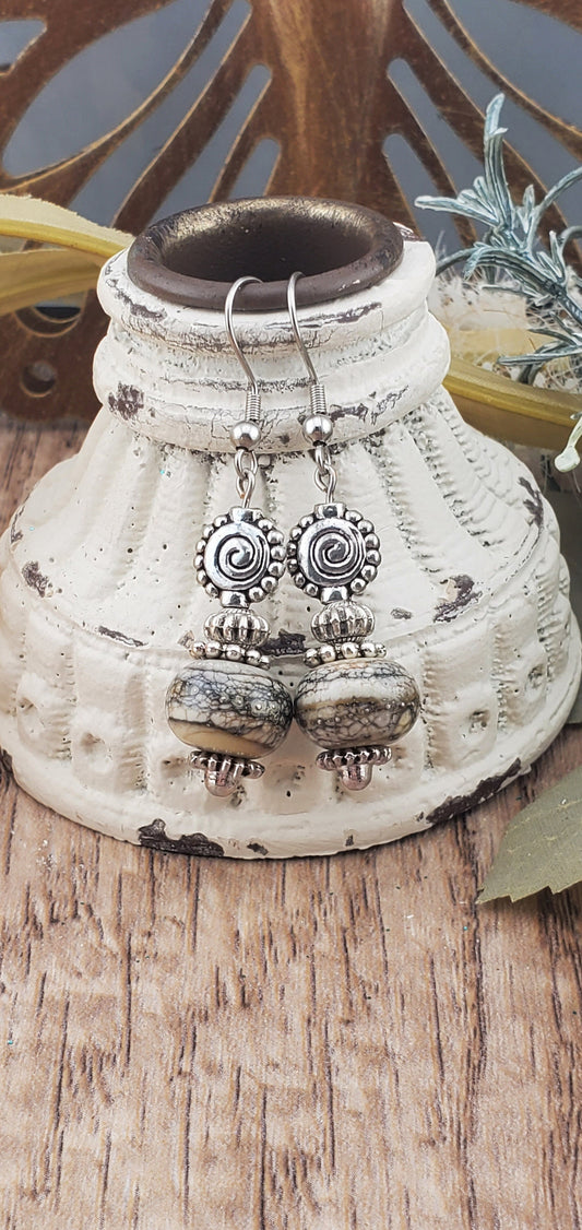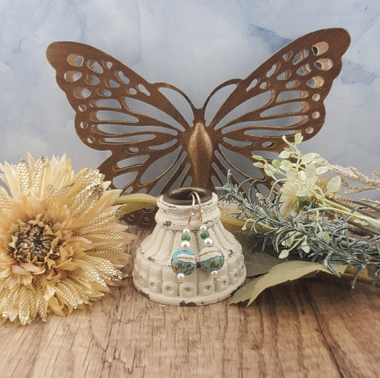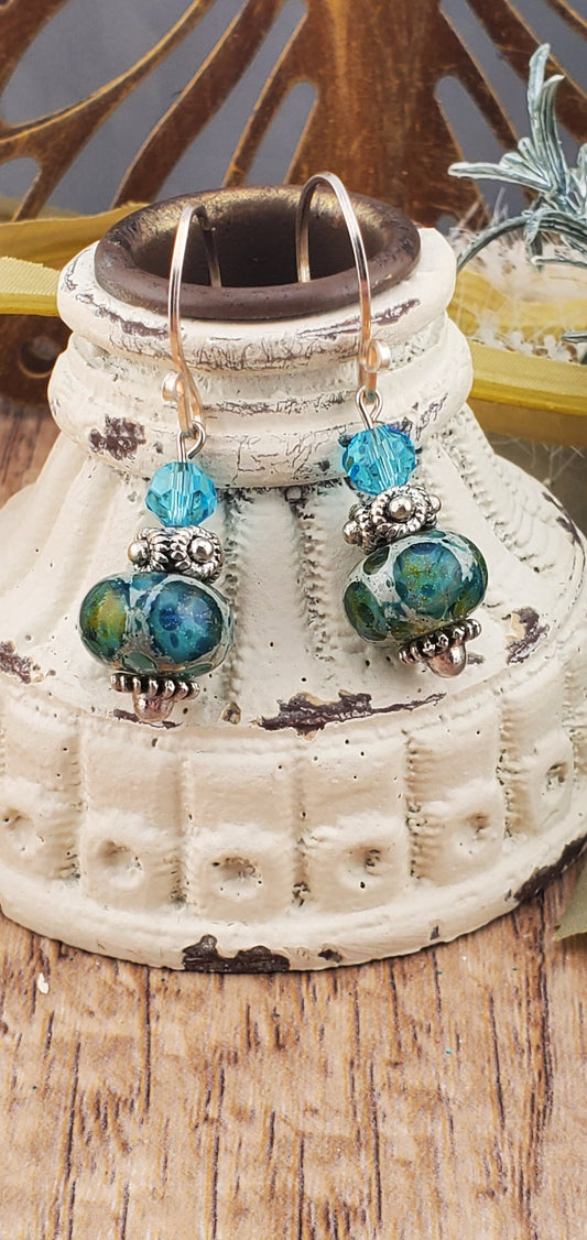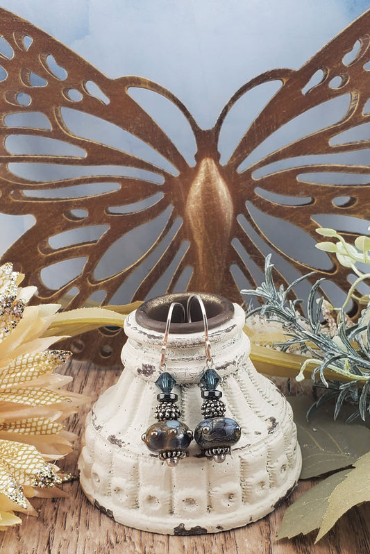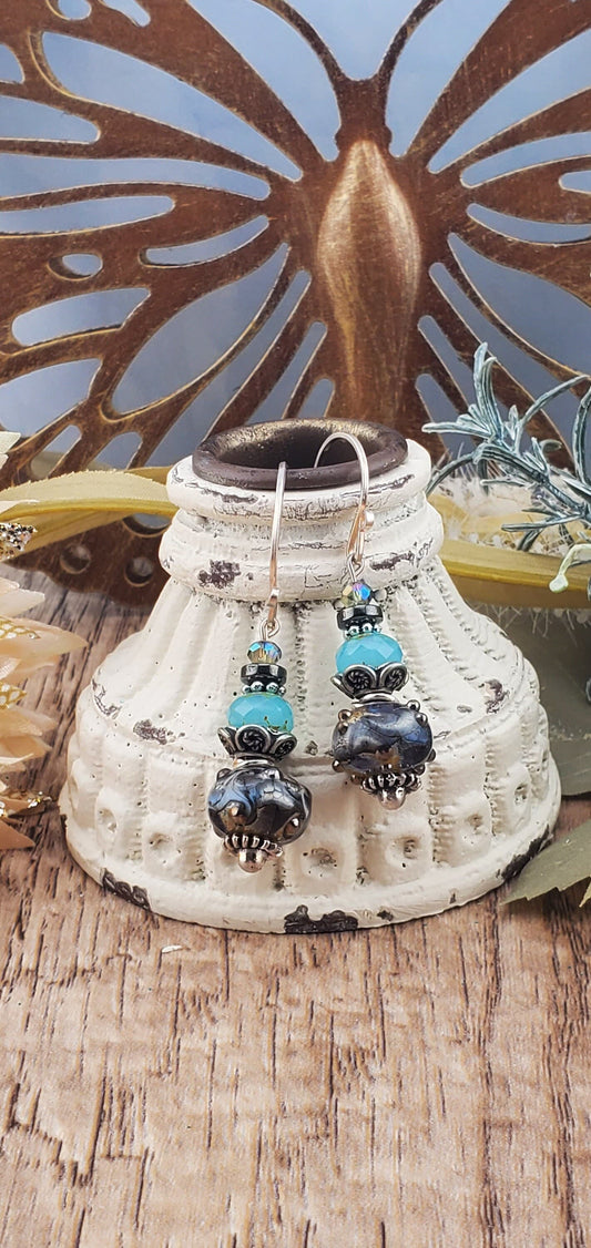 Calm before the Storm Artisan Glass Earrings, Lampwork Glass Bead by Grace Lampwork Beads, Silver Filled Earring Wire
