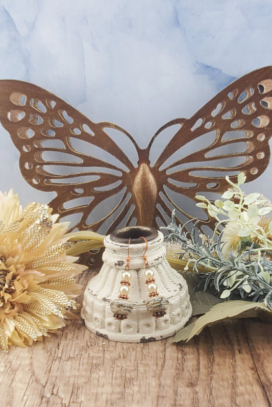 Pearly Whites Artisan Glass Earrings, Lampwork Glass Bead by Grace Lampwork Beads, Copper Earring Wire