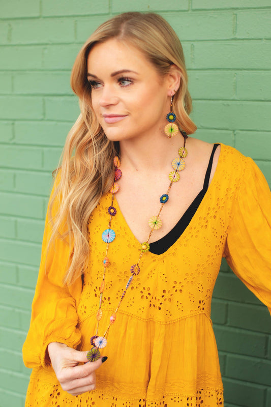 BEADS CORNER - Yellow Blue Seed Beaded Star Necklace Earrings