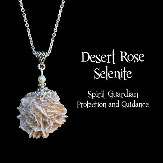 Desert Rose Selenite Necklace, Spirit Guardian, Protection