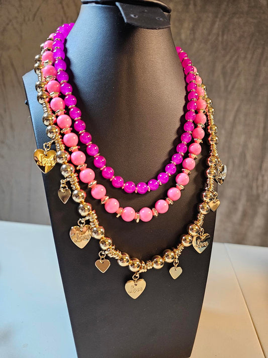 Charming Lilly Pulitzer Heart Pendant Layered Necklace Set