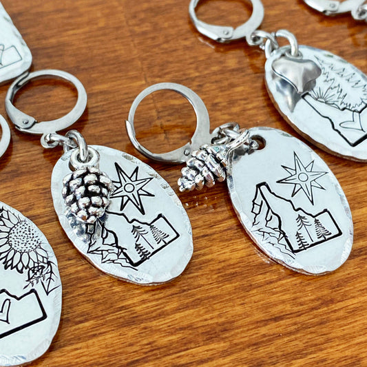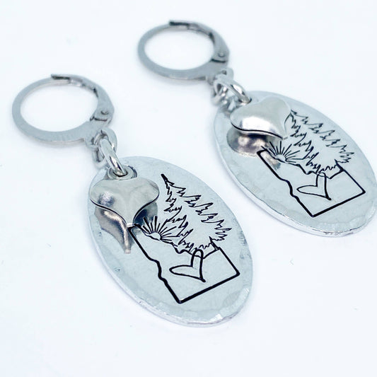 Stamped Serendipity - Idaho Heart Forest Trees Oval Dangle Earrings
