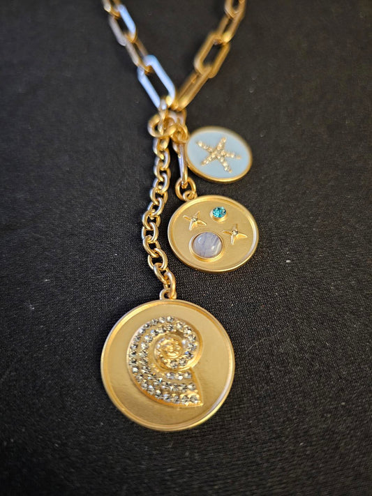 Stylish Gold Tommy Bahama Multi Charm Pendant Necklace with Semi-Precious Stones