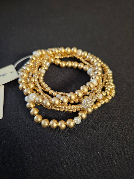 Elegant Tommy Bahama Gold and Pearl Stretch Bracelet Set