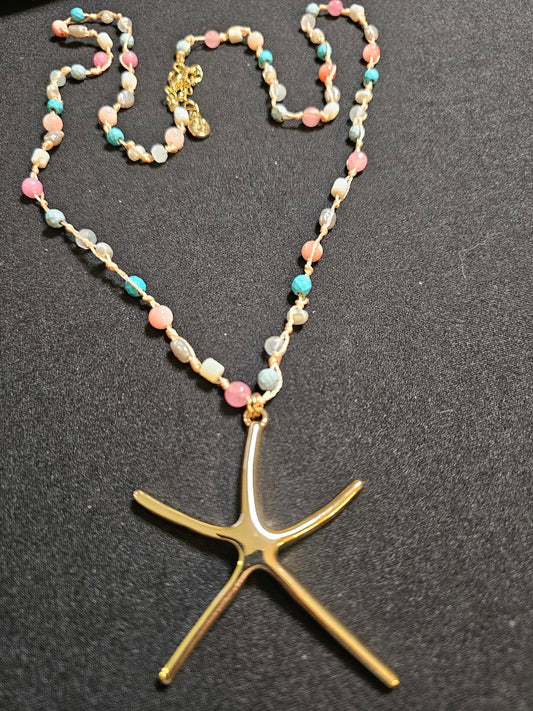 Gold Starfish Pendant Necklace with Colorful Beads