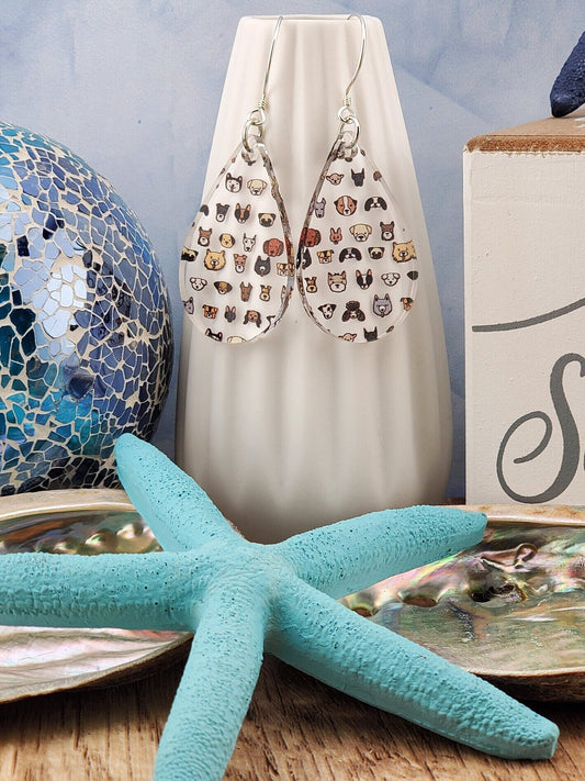 SS Life is Ruff - Dog Faces - Laser cut Lightweight Acrylic earrings - Sterling Silver Hooks