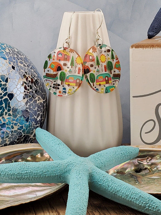 SS Life is an Adventure Camping Earrings - Laser cut Lightweight Acrylic earrings - Sterling Silver Hooks