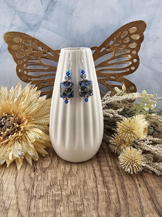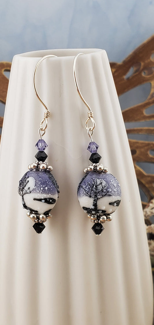 SS Winters Embrace Artisan Glass Earrings, Sterling Silver Earring Wire