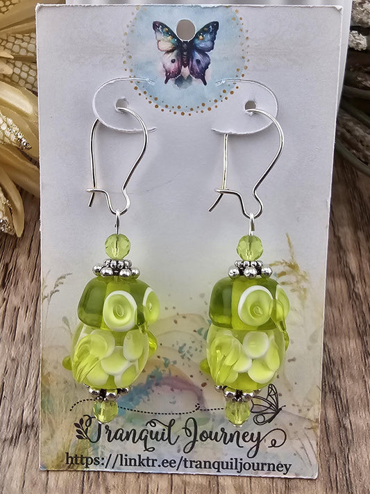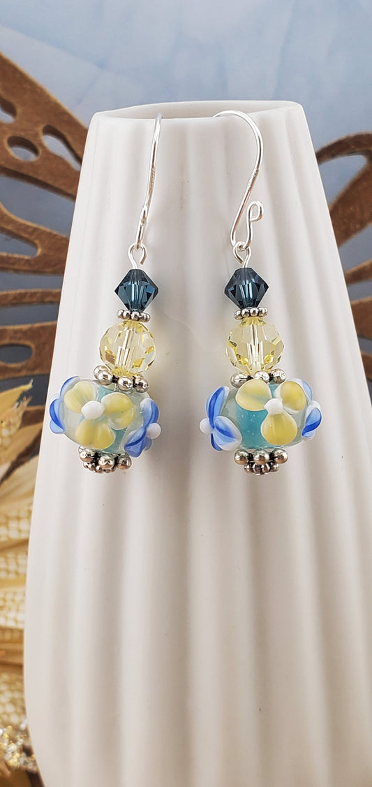 SS Meadow Mornings Artisan Glass Earrings, Lampwork Glass Bead handcrafted by a talented artisan, Sterling Silver Earring Wire