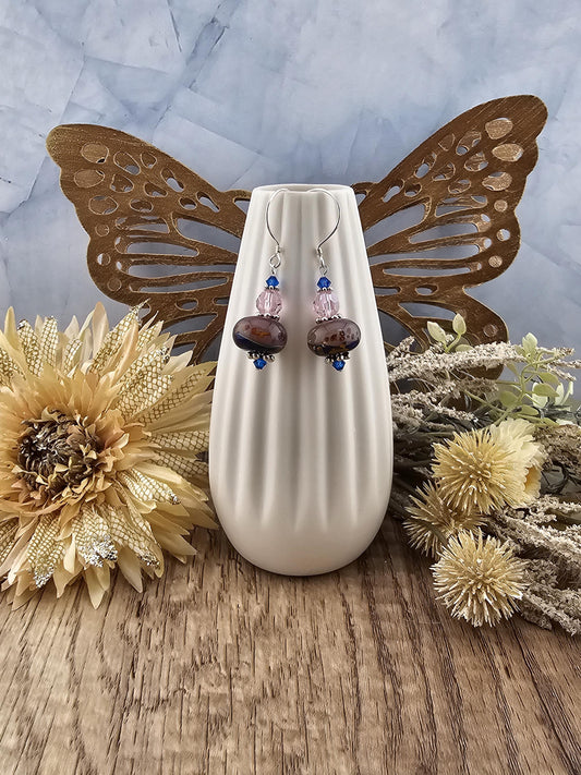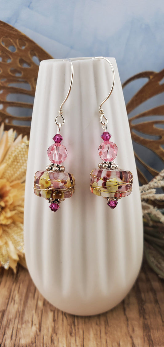SF Enchanted Petals Artisan Glass Earrings, Lampwork Glass Bead by a talented artisan, Silver Filled Earring Wire
