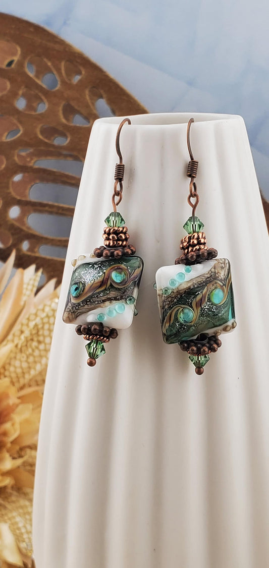 CP Coastal Charm Artisan Glass Earrings, Lampwork Glass Bead handcrafted by a talented artisan, Copper Earring Wire