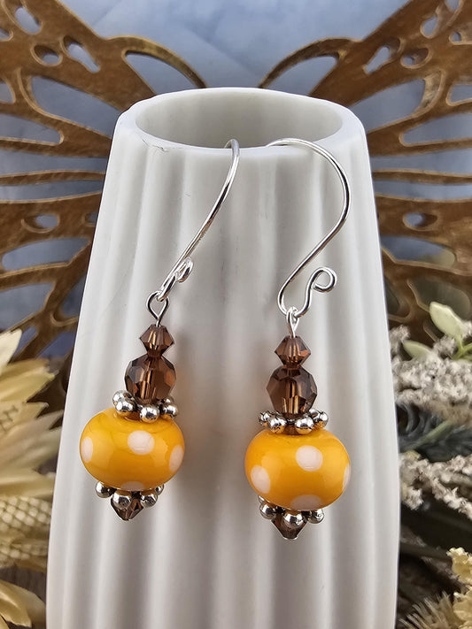 SF Citrus Sparkle Artisan Glass Earrings, Lampwork Glass Bead handcrafted by a talented artisan, Silver Filled Earring Wire