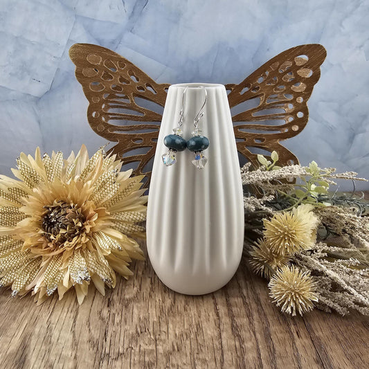 SF Enchanted Lagoon Artisan Glass Earrings, Lampwork Glass Bead by a talented artisan, Silver Filled Earring Wire