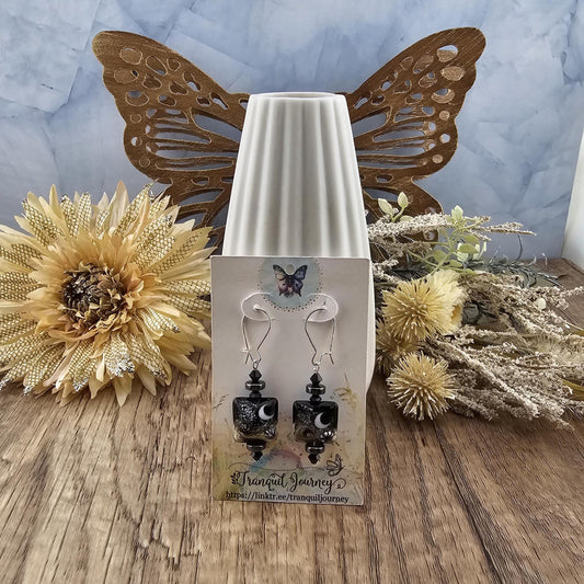 SF Celestial Night Artisan Glass Earrings, Lampwork Glass Bead handcrafted by a talented artisan, Silver Filled Earring Wire