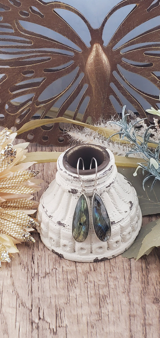 Labradorite 12x35 mm Earrings, Silver Filled Earring Wire