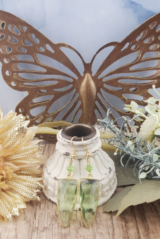 Green Amethyst 16x40 mm Earrings, Gold Plated Earring Wire