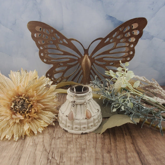 Peach Moonstone 9x18mm Earrings, Silver Filled Earring Wire