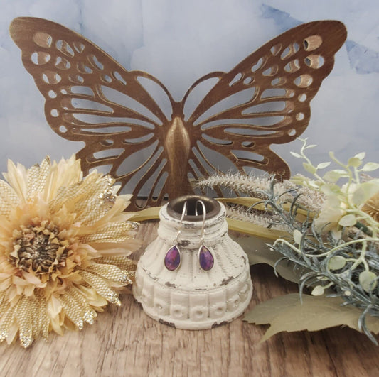 Purple Copper Turquoise 9x18 mm Earrings, Silver Filled Earring Wire