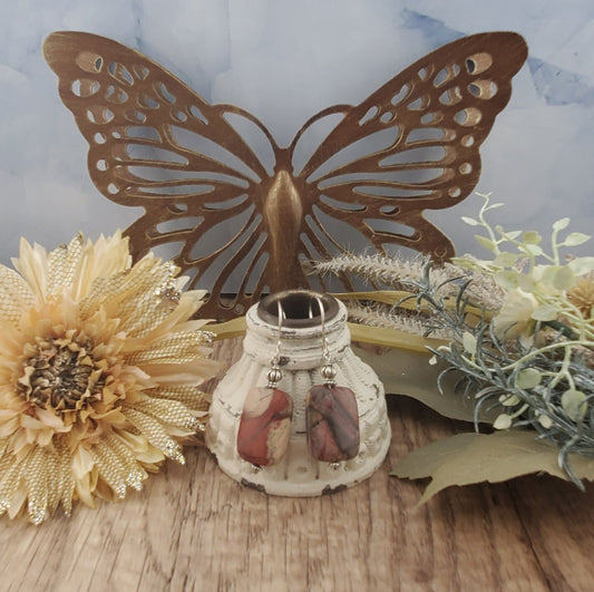 Apple Jasper Earrings, Silver Filled Earring Wire